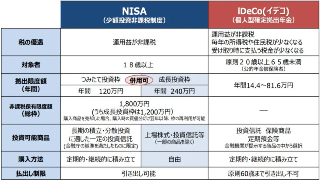 iDeCoは掛金が全額控除(節税)になる代わりに60歳までロックされますが、NISAは控除がない代わりにいつでも現金化できます。