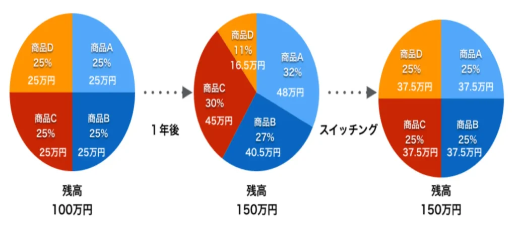 引用元:りそなグループ「スイッチングをして資産バランスを戻しリスクを調整するリバランス」