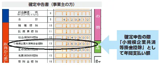 確定申告書の「小規模企業共済等掛金控除」の欄に、証明書に記載された金額を記入し、申告書と一緒にこの証明書を税務署へ提出すれば手続きは完了です。