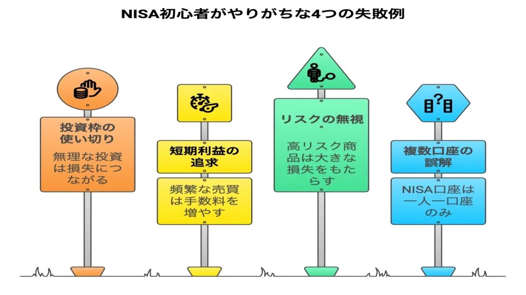 新NISAは強力な資産形成の味方ですが、使い方を誤ると「こんなはずじゃなかった」という失敗につながりかねません。特に初心者が陥りやすいのが、「焦り」や「知識不足」からくる典型的なミスです。