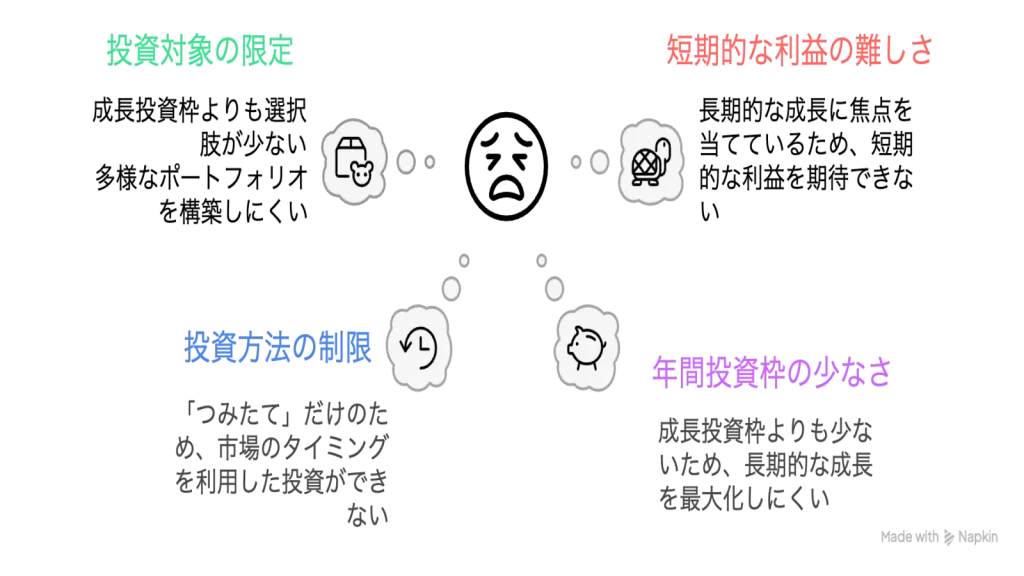 「つみたて投資枠」は、特に投資初心者にとって心強い味方ですが、万能というわけではありません。メリットとデメリットをしっかり確認しておきましょう。