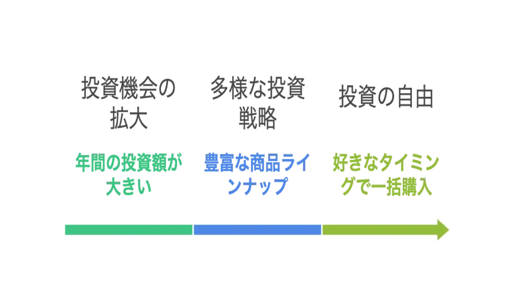 | 投資方法 | 積み立てのみ | 積み立て・一括購入OK |
